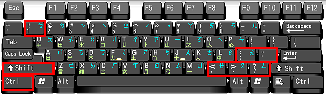 鍵盤按鍵如下圖所示,使用快速鍵輸入標點符號,需要使用的按鍵已經用紅色的框線標示。
