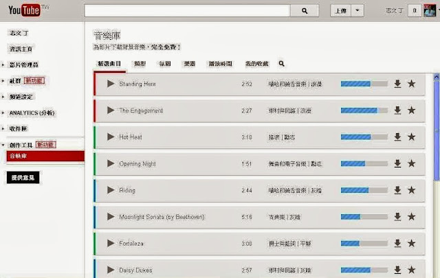 YouTube 音樂庫,提供「免費」又「合法」的素材,例如是要使用在影片中的各種「背景音樂」或是活動中背景音樂播放、簡報上的運用。